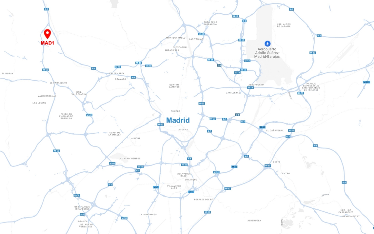 With 3,400m2 of data center server space and a maximum of 6.9MW IT load, our first data center in Madrid, Madrid 1 Data Center, provides access to a vibrant community of hyperscalers, enterprises, partners, and start-ups. We provide you with the best possible physical and technical infrastructure supported by 2N UPS systems, N+1 generator backup, and highly redundant cooling systems.